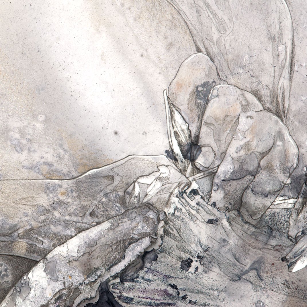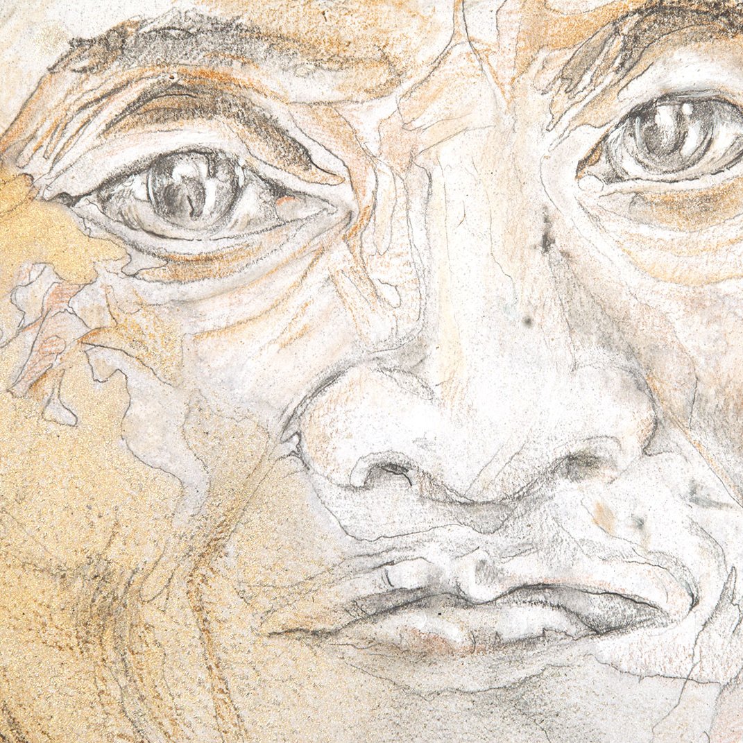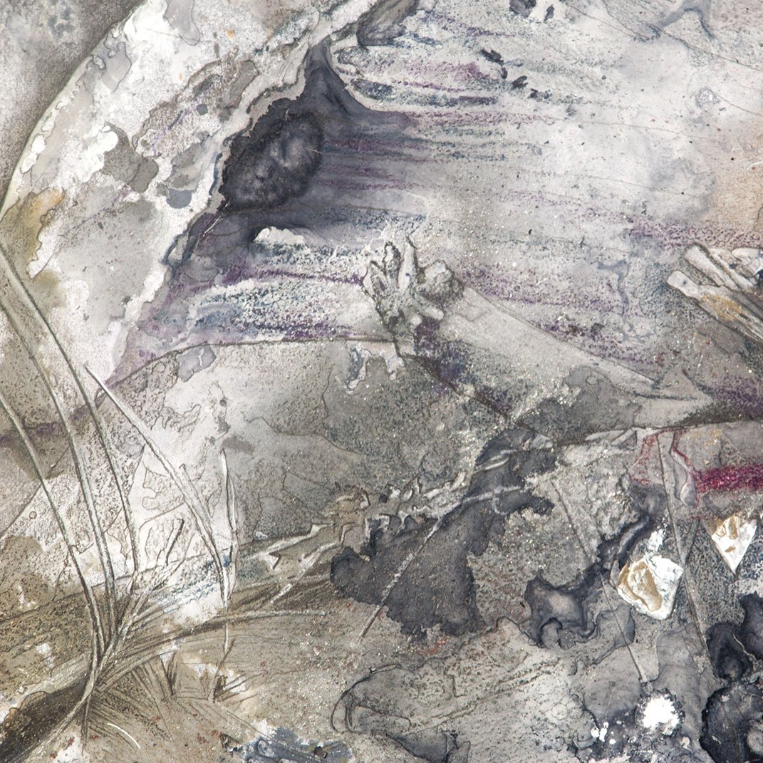 Specifications: 42 x 30.7 inches. Gouache, mixed media, silver leaf, on paper laid on canvas.