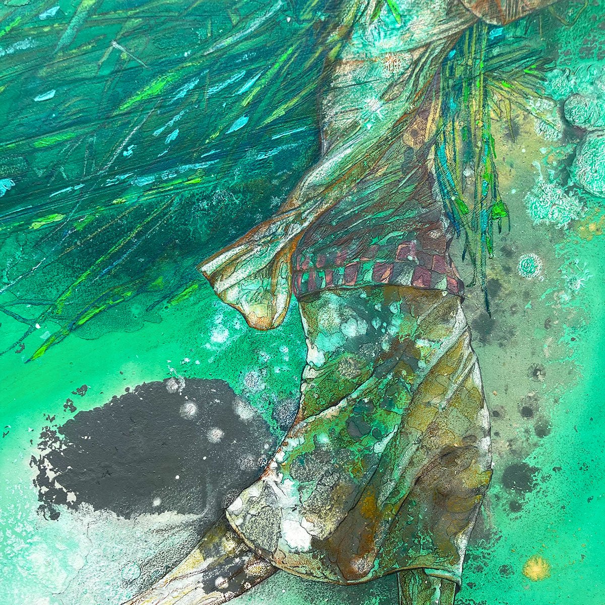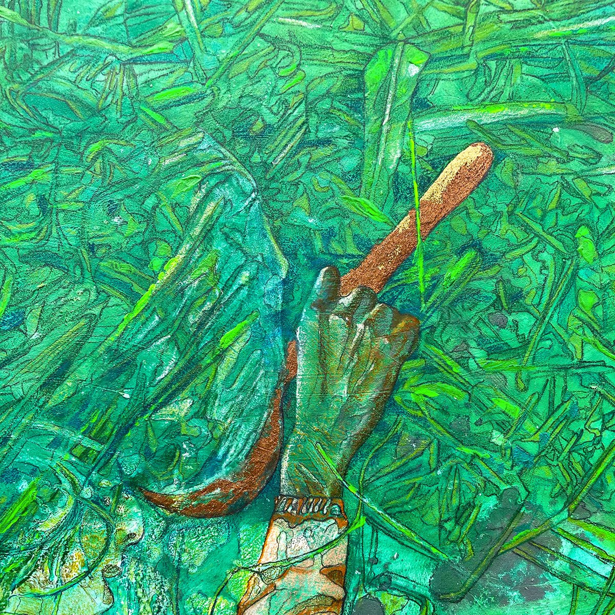 Specifications: 42 x 30.7 inches. Gouache, mixed media, gold leaf, on paper laid on canvas.