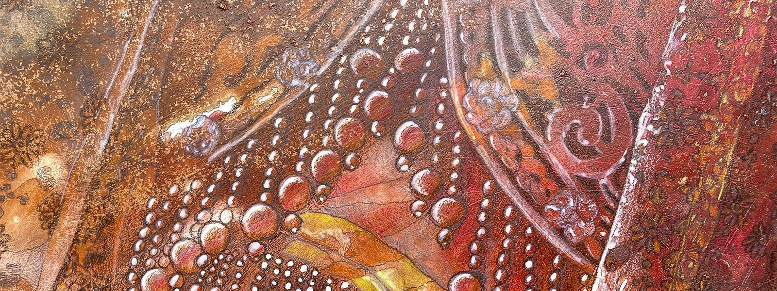Spesifikasi: 107 x 78,5 cm. Gouache, mixed media, gold leaf, di atas kertas press atas kanvas.