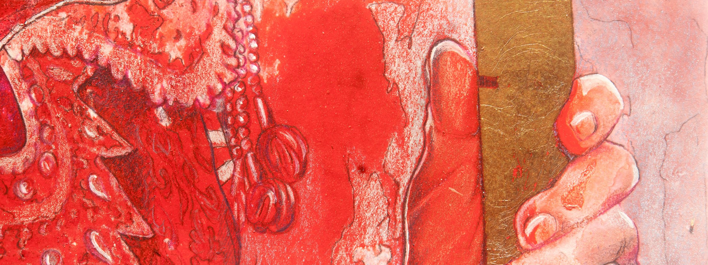 Spécifications: 77,5 x 54,5 cm x 2, Diptyque . Gouache, technique mixte, feuille de cuivre, sur papier marouflé sur toile.