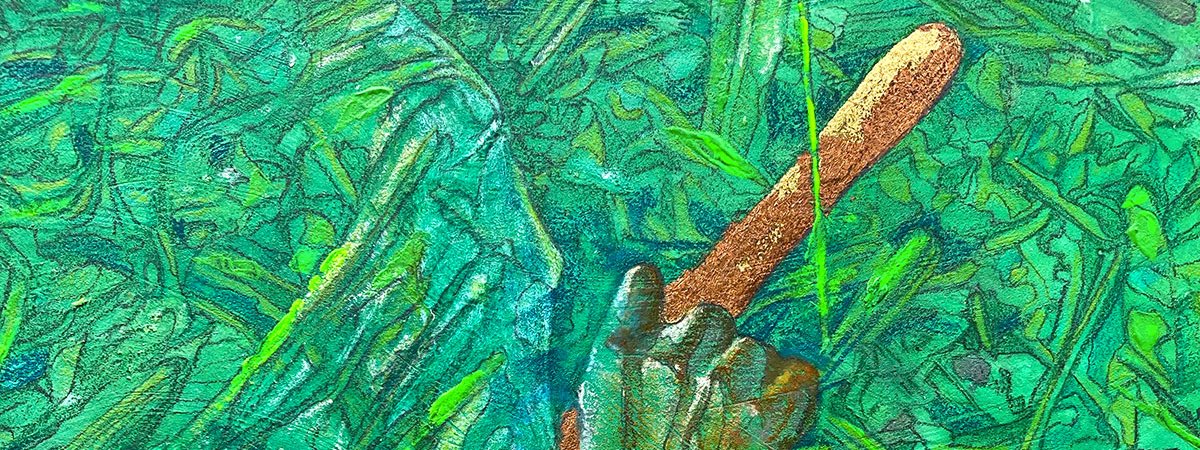 Spécifications: 107 x 78,5 cm. Gouache, technique mixte, feuille d’or, sur papier marouflé sur toile.